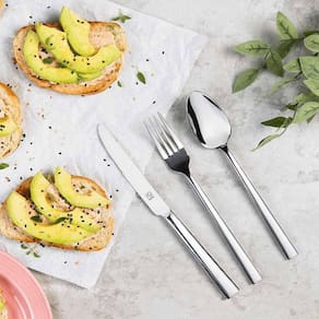 Com um design clean, o faqueiro Mykonos é elegante e ideal para compor a mesa posta, sofisticado ele agrega ergonomia, beleza e praticidade.
