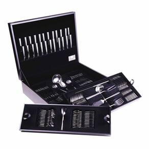 Faqueiro Mykonos com Estojo de Madeira 130 peças Hercules O maravilhoso Faqueiro da Hercules é moderno e traz em seu design Clean a certeza de que o seu espaço ficará muito mais sofisticado com ele. Tenha na sua cozinha, bar, lanchonete ou restaurante este lindo Faqueiro. Útil em todas as ocasiões, é essencial para servir com elegância em suas confraternizações, por exemplo.