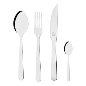 Composição: - 6 Facas de mesa - 6 Garfos de mesa - 6 Colheres de mesa - 6 Colheres de chá - 6 Facas de sobremesa - 6 Garfos de sobremesa - 6 Colheres de sobremesa