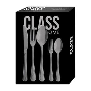 - Marca: Class Home - Material: Aço Inox Conteúdo: - 6 seis facas mesa 23cm - 6 seis garfos mesa 20cm - 6 seis colheres mesa 20cm - 6 seis colheres sobremesa 18cm - 6 seis garfos sobremesa 17cm Total: 30 trinta peças.