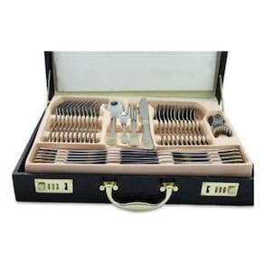 Faqueiro inox luxo 84 peças dourado com maleta