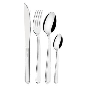 Com um design sofisticado, o Faqueiro Tramontina Búzios vai proporcionar deliciosas refeições com sua família e seus amigos, sem deixar de lado a qualidade e durabilidade dos faqueiros Tramontina. Composto por 24 peças produzidas totalmente em aço inoxidável, esse jogo de talheres inox vai deixar sua mesa ainda mais especial e charmosa, pois contam com um lindo acabamento nos seus cabos. As lâminas das facas para churrasco 4 são tratadas termicamente, garantindo maior durabilidade do fio e se tornando a escolha perfeita para o corte de carnes, frutas e legumes. Os garfos e colheres de mesa, desse moderno faqueiro Tramontina, são resistentes graças a espessura do aço e encaixam perfeitamente em sua boca, proporcionando conforto e segurança durante o uso. Os talheres Tramontina serve até 6 pessoas, e é a escolha perfeita para saborear as melhores receitas. São fáceis de limpar e ainda podem ser lavados à máquina de lavar, facilitando o seu dia a dia.