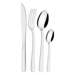 Faqueiro Inox Tramontina Búzios 24 Peças Encante seus amigos e familiares com o Faqueiro Tramontina Búzios em Aço Inox com Detalhe 24 Peças Produzido totalmente em aço inox, o faqueiro além de ser resistente e durável, deixa a composição da sua mesa ainda mais especial, pois as peças que compõem o jogo possuem um lindo acabamento, garantindo um charme a mais para a refeição. As peças ainda são fáceis de limpar e podem ser lavadas na máquina de lavar louças. A escolha perfeita para saborear as melhores receitas