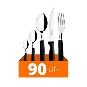Faqueiro Ipanema 90 Peças Lâminas Em Aço Inox Cabo Preto Ptop - Tramontina