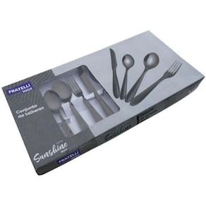 A mesa posta tornou-se uma tendência muito forte, e com isso alguns detalhes fazem toda a diferença na hora de fazer as suas refeições. O nosso Faqueiro Black tem tudo o que você precisa para tornar esse momento único, alinhando estilo e elegância. Todo feito em aço inox garantindo a qualidade, a classe e a durabilidade. A cor Black tem o toque de classe e modernidade. Você não precisa mais de uma ocasião especial para tornar sua refeição em um momento de satisfação. O kit contém 24 peças sendo 6 garfos de mesa, 6 facas de churrasco, 6 colheres de mesa e 6 colheres de chá. Suas dimensões são: -Garfo de Mesa: Altura 21cm x Largura 2,5cm -Colher de Mesa: Altura 21cm x Largura 5cm -Faca de Churrasco: Altura 23cm x Largura 2cm -Colher de Chá: Altura 15cm x Largura 3,5cm