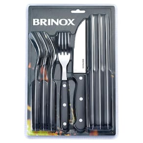 Faqueiro Jogo De Talheres Para Churrasco Jumbo Inox 8 Peças Preto Brinox 2554/308 Conjunto de Talheres Jumbo para Churrasco 8 peças Brinox 2554/1308