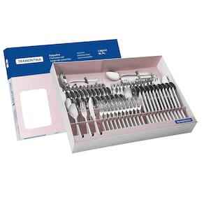 O Faqueiro Tramontina Laguna em Aço Inox com Facas de Churrasco Acabamento em Brilho com Detalhes no Cabo 91 Peças traz um conjunto especial de talheres para sua cozinha.