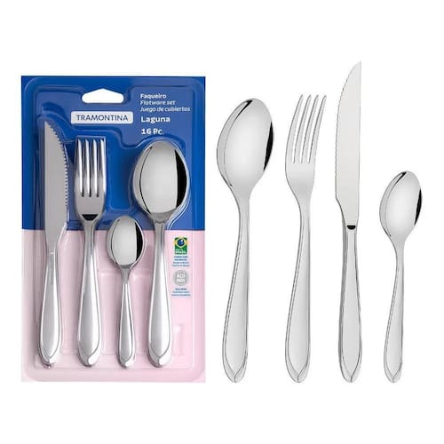 O Faqueiro Laguna Em Aço Inox 16 Peças Tramontina é ideal para quem busca qualidade e durabilidade em seus talheres. Com lâminas em aço inoxidável e cabo também em aço inoxidável, esse faqueiro é resistente e fácil de limpar, podendo ser utilizado na lava-louças. Composto por 16 peças, o faqueiro inclui colher de mesa, colher para chá, faca para churrasco e garfo de mesa, sendo 4 unidades de cada. Seu design elegante e moderno, da linha Laguna, traz um toque de sofisticação para sua mesa, seja no cotidiano ou em momentos especiais.