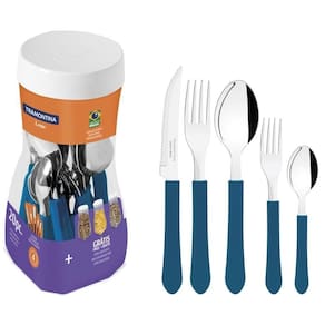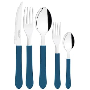 Os talheres têm lâminas produzidas em aço inox, oferecendo maior durabilidade devido ao tratamento térmico e possuem cabos em polipropileno na cor azul, proporcionando um manuseio super leve e confortável.