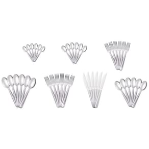 O faqueiro serve 6 pessoas e é composto por: Colher e garfo de mesa, faca de churrasco, colher e garfo de sobremesa, e colheres de chá e café. Produzidos no Brasil, os talheres garante qualidade e durabilidade por muito mais tempo. Talheres com polimento extra brilho Colheres de chá e café com acabamento vibrado Espessura: 2,5 mm da faca Espessura: 1,2 mm do garfo e colher.