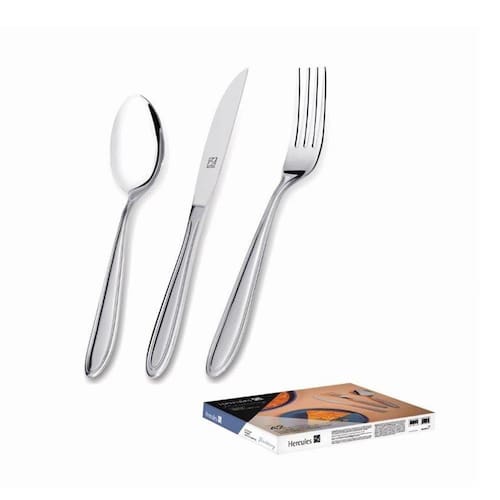 Faqueiro Monterrey Inox Hercules Com Estojo 42 Peças Produzido em aço inox, o faqueiro monterrey vai trazer sofisticação a sua mesa por ter um design moderno e arrojado. Produzidos em aço inox aisi 430 (18/0) servem para cortar carnes, legumes, frutas ou qualquer outro alimento. Em cor natural, combina com qualquer decoração dando aquele charme ao ambiente. Reúne resistência e funcionalidade, para que você tenha produtos de qualidade reconhecida. Contém: 6 colheres mesa: 20,1 cm / 6 garfos de mesa: 20,6 cm / 6 facas de mesa: 22,7 cm / 6 colheres de sobremesa: 18,3 cm / 6 garfos de sobremesa: 18,5 cm / 6 facas de sobremesa 18,5cm / 6 colheres de chá: 12,8 cm Cor: cinza Material: aço inox Medidas da embalagem: 54cm comp. X 7cm alt. X 42cm larg. Peso: 1,305kg