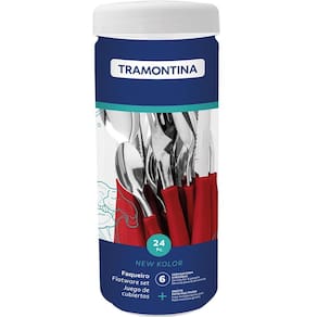 Com o Faqueiro Tramontina New Kolor, 24 Pecas, Vermelho - 23198/793 voce garante praticidade e estilo as suas refeicoes. Com design funcional e moderno, oferece garfos, colheres e facas de alta qualidade. As laminas em aco inox garantem durabilidade e resistencia a corrosao, enquanto as facas possuem laminas temperadas, proporcionando excelente desempenho no corte. Os cabos de polipropileno sao ergonomicos e confortaveis, permitindo um manuseio seguro e preciso. Alem disso, as pecas sao faceis de limpar e podem ser levadas a lava-loucas, tornando suas refeicoes ainda mais praticas e elegantes. Nao perca essa oportunidade e garanta ja o seu!