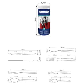 Itens do Conjunto: Colher de Mesa New Kolor 6 pcs - 23163/070 Colher para Cha New Kolor 6 pcs - 23167/070 Faca para Churrasco 4 New Kolor 6 pcs - 23160/074 Garfo de Mesa New Kolor 6 pcs - 23162/070