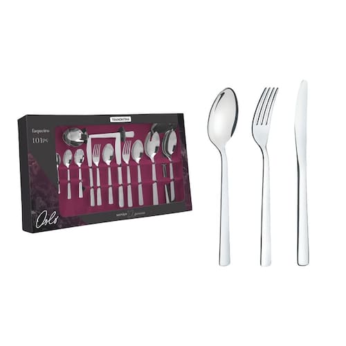 Faqueiro Oslo em Aço Inox com Facas de Mesa Forjadas Acabamento Brilho 101 Peças Tramontina