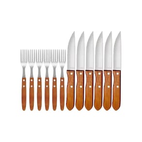 Faqueiro P/Churrasco Aço Inox Tramontina Jumbo 12 Peças Para saborear aquele churrasco especial com a família e os amigos, conte com o jogo para churrasco Tramontina Jumbo com lâminas em aço inox e cabos de madeira natural 12 peças. Desenvolvido para proporcionar praticidade e beleza à sua mesa, ele tem peças produzidas com lâminas em aço inox, onde as facas têm maior durabilidade em seu fio de corte devido ao tratamento térmico e os garfos contam com maior resistência devido à estampagem. Seus cabos são em madeira natural e contam com rebites de alumínio que os deixam com um belíssimo design. Escolha seu corte de carne preferido e compartilhe sua mesa com a Tramontina Informações Gerais Lâminas de aço inox. As lâminas das facas têm maior durabilidade do fio devido ao tratamento térmico. As lâminas dos garfos contam com maior espessura e uma estampagem do aço que garante maior resistência, evitando deformações. Cabos de madeira natural. Rebites de alumínio. Contém: 6-facas para Churrasco Jumbo 5 6-garfos Jumbo Especificações: Marca: Tramontina Modelo: Faqueiro P/Churrasco Aço Inox Jumbo 12 Peças Contém: 12 peças Material: Aço Inox Vendedor: 3 meses Marca: Não Informado