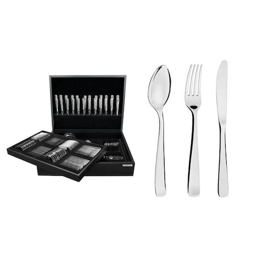 Faqueiro Pacific 101 Peças Em Aço Inox Alto Brilho Tramontina 66962/214 Descrição: A escolha certa para a sua mesa O Faqueiro Tramontina em Aço Inox com F acas de Mesa Forjadas Acabamento Alto Brilho com Detalhes no Cabo e Estojo de Madeira com Compartimento Retrátil 101 Peças da linha Pacific, traz excelentes opções para um serviço completo para mesa e sobremesa. Proporcionando colheres com bojo em formato simétrico e bordas cuidadosamente arredondadas. Garfos com dentes polidos na parte interna, com formato apropriado para a boca e bordas arredondadas para proporcionar maior conforto no uso. Facas totalmente temperadas, que garantem maior durabilidade no fio de corte serrilhado e maior resistência à corrosão, e por suas características de temperabilidade, não riscam as porcelanas. As peças são produzidas em aço inox, garantindo durabilidade e proporcionando um acabamento em alto brilho sofisticado, além disso, conta com detalhes no cabo. Acompanhadas de um belíssimo estojo de madeira MDF, que pode ser incluído na decoração ou uma opção de presente. As peças são acondicionadas em um belo estojo de madeira MDF. Totalmente feitas de aço inox, altamente duráveis, mantêm suas características , preservando a beleza, a higiene e a durabilidade do material. Colheres com bojo em formato simétrico e bordas cuidadosamente arredondadas. Garfos com dentes polidos na parte interna, com formato apropriado para a boca e bordas arredondadas para proporcionar maior conforto no uso. Facas totalmente temperadas, que garantem maior durabilidade no fio de corte e maior resistência à corrosão, e por suas características de temperabilidade, não riscam as porcelanas. Acabamento em brilho, com detalhes no cabo. Serviço completo para mesa e sobremesa. Podem ser lavadas diariamente na máquina de lavar louças. Peso bruto: 10,48kg Lavagem manual: Use apenas sabão ou detergente e uma esponja macia. Outros tipos de produtos, como palha de aço, poderão riscar ou prejudicar o brilho dos talheres. No caso de o talher ser dourado, esse procedimento é imprescindível, a fim de não prejudicar a superfície tratada com ouro 24k. Enxague bem cada peça, a fim de remover totalmente os resíduos dos produtos de limpeza, que, por serem abrasivos, podem atacar o inox. Sempre que possível, use água quente, pois renova o brilho do talher. Após a lavagem, enxague imediatamente os talheres, caso contrário, as substâncias químicas da água cloro poderão causar manchas. Evite atrito entre os talheres durante o processo de lavagem e no armazenamento, para mantê-los sem riscos. Evite o contato das peças com superfícies quentes. Elas provocam a descoloração do produto. Não guarde os talheres em locais úmidos. A umidade também provoca manchas. Qualquer faca, independentemente de marca, para manter o fio de corte, é fabricada em aço com maior teor de carbono e, por isso, é menos resistente à corrosão. Assim, pedimos uma atenção especial para este artigo, pois estará mais propenso aos problemas citados. Lavagem em máquina de lavar louças: Não carregue em demasia a cesta dos talheres. Separe bem as peças, pois o contato permanente entre elas, durante a secagem, poderá causar manchas. Retire os talheres logo que tenha terminado o ciclo enxaguar, a fim de que eles sejam secados manualmente. Contém: 12 - Colher de mesa 01 - Colher para arroz 12 - Colher para café 12 - Colher para chá 12 - Colher para sobremesa 01 - Concha terrina 12 - Faca de mesa 12 - Faca para sobremesa 12 - Garfo de mesa 12 - Garfo para sobremesa 01 - Pá para açúcar 01 - Talheres para salada 01 - Estojo de Madeira MDF. Prezado Cliente: Temos todos os produtos dessa linha com excelentes valores. A cor do produto é exatamente a mesma que consta na foto do anúncio