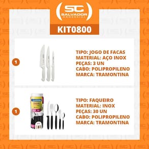 OBS: Veja na descrição os itens que acompanham o jogo. COMPONENTES DO KIT: 1 - Jogo de Faca Premium 3 PÇ - Tramontina 24499811 1 - Faqueiro Facas Talheres Ipanema 30pç Tramontina 23398/088 Jogo de Facas Premium com Lâminas em Aço Inox e Cabos de Polipropileno Branco 3 Peças - Tramontina 24499811 : 90 dias para vícios ou defeitos de fabricação. As lâminas de aço inox tem maior durabilidade do fio devido ao tratamento térmico. Os cabos de polipropileno possuem maior resistência e durabilidade. Podem ir à máquina de lavar louças facilitando seu dia a dia. - Cor do cabo: Branco - Material do cabo: Polipropileno - Peso Líquido: 0,20 kg. - Peso Bruto: 0,25 kg. - Medidas Embalagem: 2,0cm A x 16cm L x 38cm C - Conteúdo do jogo: 1 - 24472186 - Faca Utility Lâmina 6 15,24cm 1 - 24473187 - Faca para Cozinha lâmina 7 17,78cm 1 - 24470184 - Faca para Frutas e Legumes Lâmina 4 10,16cm Faqueiro Facas Talheres Ipanema 30pç Tramontina 23398/088 Faca e Garfo. Descrição Ficha técnica: Modelo Ipanema 30 peças. Cód. 23398/088 cor Preta. Uso Seguro e Adequado: - Antes da primeira utilização, lave bem as peças e seque-as. - Produto cortants e perfurantes, tenha cuidado e mantenha sempre fora de alcance das crianças. - Para maior durabilidade dos produtos, recomenda-se secar bem antes de gaurar, mesmo após lavagem em máquinas. - Para descarte dos produtos e embalagem, sega as orientações de reciclagem vigente. Conteúdo: 6 Faca Lâmina 11,2cm - medida 21cm 6 Garfos de mesa. - medida 19cm 6 Colheres de mesa. - medida 19cm 6 Garfos para sobremesa. - medida 14cm 6 Colheres para chá. - medida 14cm - Lâmina em aço inox ,maior resistência á desgaste por fricção, raspagem. - Fácil manuseio e limpeza sempre cuidando com navalha e pontas . - 30 pç por embalagem. Peso Líquido: 0,95 Kg Peso Bruto: 1,05 Kg Medida Embalagem: 27cm Alt x 11cm L x 11cm P. Marca: Não Informado