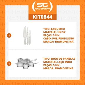 OBS: Veja na descrição os itens que acompanham o jogo.COMPONENTES DO KIT:1 - Jogo de Faca Premium 3 PÇ - Tramontina 244998111 - Jogo de Panelas com Fundo Triplo Corpo e Tampas em Inox 5 pçs - Allegra - Tramontina Cód. 65650280jogo de Facas Premium com Lâminas em Aço Inox e Cabos de Polipropileno Branco 3 Peças - Tramontina 24499811Garantia: 90 dias para vícios ou defeitos de fabricação.As lâminas de aço inox tem maior durabilidade do fio devido ao tratamento térmico.Os cabos de polipropileno possuem maior resistência e durabilidade.Podem ir à máquina de lavar louças facilitando seu dia a dia.- Cor do cabo: Branco- Material do cabo: Polipropileno- Peso Líquido: 0,20 kg.- Peso Bruto: 0,25 kg.- Medidas Embalagem: 2,0cm A x 16cm L x 38cm C- Conteúdo do jogo:1 - 24472186 - Faca Utility Lâmina 6 15,24cm 1 - 24473187 - Faca para Cozinha lâmina 7 17,78cm 1 - 24470184 - Faca para Frutas e Legumes Lâmina 4 10,16cm Jogo de Panelas com Fundo Triplo Corpo e Tampas em Inox 5 pçs - Allegra - TramontinaCód. 65650280componentes:1 un - Panela 1,5 litro Allegra13,9cm A x 18cm L x 33,3cm PDiâmetro: 16cmRef. 626511601 un - Panela 2,20 litros Allegra10cm A x 18cm L x 38cm PDiâmetro: 18cmRef. 626511811 un - Caçarola funda 3,10 litros Allegra16,5cm A x 22,2cm L x 27,5cm PDiâmetro: 20cmRef. 626542001 un - Cozi-vapore 1,7 litros Allegra9,2cm A x 18,1cm L x 23,3cm PDiâmetro: 16cmRef. 626601611 un - Frigideira s/ tampa 1,3 litros Allegra6,8cm A x 22,4cm L x 39,9cm PDiâmetro: 20cmRef. 62666200- Material: aço inox- Tampas com encaixe perfeito e saída de vapor- Fundo triplo: aço inox + alumínio + aço inox - Cozimento rápido com distribuição de calor uniforme- Economia de tempo e energia- As alças de inox aquecem durante o cozimento. Aconselhamos o uso de luvas durante o manuseio.- Pode ir ao forno em temperatura MÁXIMA de 260C- Não aqueça o alimento colocando uma panela do mesmo diâmetro sobre a outra.- Capacidade volumétrica máxima de cozimento é 3/4 da capacidade total da peçaPeso líquido do conjunto: 3,34 kgPeso bruto do conjunto: 3,98 kgMedidas da embalagem:11cm A x 44,7cm L x 58,5cm P