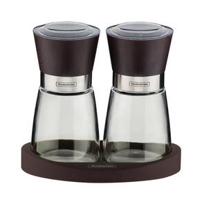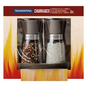Jogo Moedor de Sal e Pimenta em Cerâmica e Vidro com Base em Silicone Linha Churrasco - Tramontina 26499042 Garantia: 90 dias para vícios ou defeitos de fabricação. - Moedores de cerâmica com regulador de tamanho de grão, para que seja ajustado conforme o seu gosto. - Recipientes de vidro e tampas de plástico. - Base de silicone. - Capacidade de 200 g para sal e 100 g para pimenta. - Peso Líquido: 0,5900 kg. - Peso Bruto: 0,7100 kg. - Medidas Produto: 13cm A x 6,5cm diâmetro - Dimensões Embalagem: 11cm A x 23cm L x 21cm C.