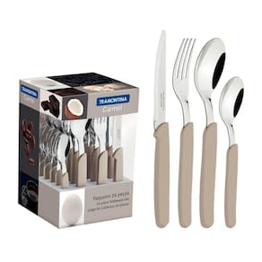 Para quem gosta de fazer bonito em todas as ocasiões, sejam elas parte da rotina diária ou um momento especial, o faqueiro Tramontina Carmel com lâminas em aço inox e cabos de polipropileno natural médio 24 peças leva a beleza dos produtos da linha Carmel, que foi pensada para proporcionar leveza e alegria, seja na hora do almoço ou do jantar. O faqueiro conta com garfos, facas para churrasco, colheres e colheres de chá produzidas com lâminas em aço inox e espessura que mantém formas inalteradas mesmo com uso intenso. Os cabos são produzidos em polipropileno com diversas opções de cores, oferecendo um manuseio confortável e . O fio das facas tem maior durabilidade, pois as lâminas em aço inox recebem tratamento térmico. Você notará a diferença da sua mesa desde o primeiro uso.