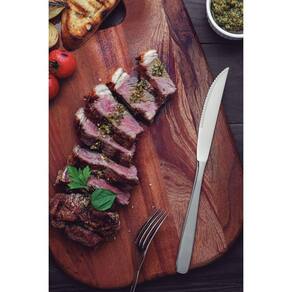 As colheres possuem bojos simétricos e bordas arredondadas, enquanto os garfos têm dentes polidos na parte interna e bordas arredondadas para maior conforto. As facas, totalmente temperadas, oferecem durabilidade superior no fio de corte e resistência à corrosão, além de serem seguras para uso em porcelanas.