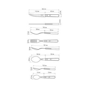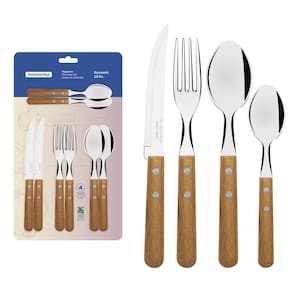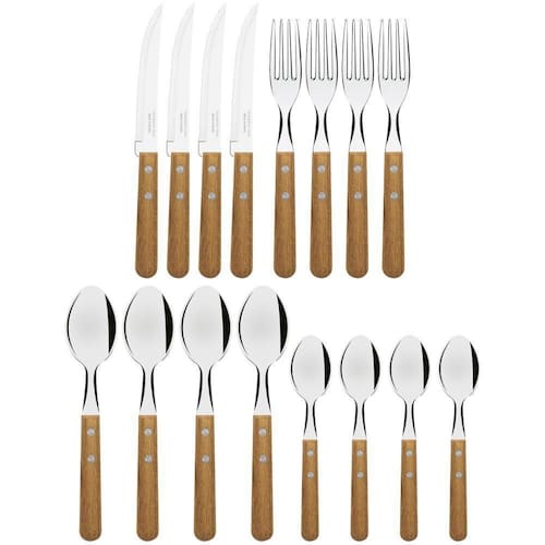 Leve o Faqueiro Tramontina Dynamic com Lâminas em Aço Inox e Cabos de Madeira Natural 16 Peças para seu dia a dia e dê um toque rústico para suas refeições. Composto por facas, garfos e colheres produzidas com lâminas de aço inox e cabos de madeira natural com rebites de alumínio, ele é um faqueiro resistente e durável. Suas facas têm excelente fio de corte e seus garfos e colheres possuem estampagem especial que evitam deformações. Os talheres são muito fáceis de limpar e vão levar maior praticidade para o seu dia!