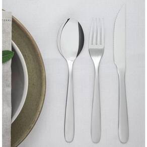 Peças totalmente feitas de aço inox, altamente duráveis, mantêm suas características , preservando a beleza, a higiene e a durabilidade do material. Colheres com bojo em formato simétrico e bordas cuidadosamente arredondadas. Garfos com dentes polidos na parte interna, com formato apropriado para a boca e bordas arredondadas para proporcionar maior conforto no . Facas totalmente temperadas, que garantem maior durabilidade no fio de corte e maior resistência à corrosão, e por suas características de temperabilidade, não riscam as porcelanas. Acabamento em brilho. Próprias para diário combinam com qualquer ambiente. Podem ser lavadas diariamente na máquina de lavar louças.
