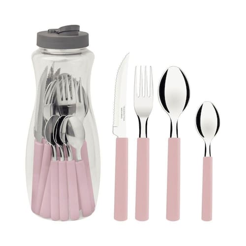 O faqueiro Tramontina Gamboa com lâminas em aço inox e cabos de polipropileno rosa 16 peças é indispensável para você que adora mesa posta e não abre mão do estilo em suas refeições. Ele tem suas peças desenvolvidas com lâminas de aço inox e cabos de polipropileno, conferindo resistência, durabilidade e conforto no manuseio, assegurando maior firmeza e segurança durante o uso. Composto por 16 peças, ele é ideal para atender suas exigências diárias, além de ser uma excelente escolha para recepcionar convidados em grande estilo ou aproveitar com a família em uma refeição do dia a dia. O faqueiro ainda pode ser lavado na lava-louças, proporcionando mair praticidade e otimizando seu tempo na cozinha. Sua mesa será elevada a um novo patamar de beleza e sofisticação com a presença do faqueiro Tramontina Gamboa!