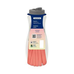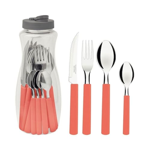 Squeeze: Ideal para servir, em caso de transporte de líquidos em bolsa ou mochila, vazamentos poderão ocorrer.Lâminas de aço inox. As lâminas das facas têm maior durabilidade do fio devido ao tratamento térmico. Os garfos e colheres garantem maior resistência devido a espessura do aço e a estampagem das lâminas. Os cabos de polipropileno possuem maior resistência e durabilidade. Podem ir à máquina de lavar louças facilitando seu dia a dia.