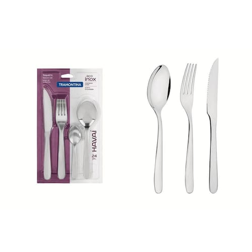 Faqueiro Tramontina Havaí em Aço Inox com Facas para Churrasco Acabamento em Brilho 24 Peças Tenha produtos de bom gosto na sua cozinha. O Faqueiro para Churrasco Tramontina Havaí em Aço Inox 24 Peças é um conjunto completo para as necessidades que você encontrar. Ideais para uso diário, as 24 peças se encaixam em qualquer ambiente e em diferentes momentos. Possuem a qualidade do aço inox e um charmoso acabamento em brilho, que embeleza sua mesa. São produtos versáteis que facilitam também na hora da limpeza, podendo ser lavados diariamente na máquina de lavar louças. Os utensílios apresentam características únicas e pensadas para você. Os garfos possuem dentes polidos na parte interna, com formato apropriado para a boca e bordas arredondadas, proporcionando maior conforto no uso. As colheres com bojo tem formato simétrico e bordas cuidadosamente arredondadas. As facas são totalmente temperadas, garatindo maior durabilidade no fio de corte e maior resistência à corrosão. Elas ainda preservam as louças, já que não riscam as porcelanas. O faqueiro ainda traz facas especiais para churrasco, tornando os momentos em volta da churrasqueira mais saborosos.