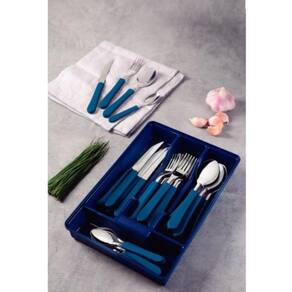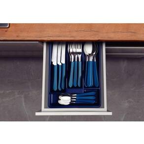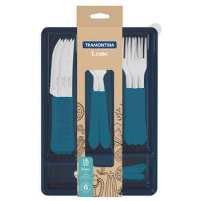 Para completar suas refeições e levar muito mais cor para sua mesa, conte com o Faqueiro Tramontina Leme com Lâminas em Aço Inox e Cabos de Polipropileno Azul Oceano com Gaveteiro 25 peças. Com peças produzidas com lâminas em aço inox e cabos desenvolvidos em polipropileno, ele é resistente, durável e deixa a hora de saborear sua comida preferida ainda mais especial. Ele é ainda muito fácil de limpar e pode ser levado à máquina de lavar louças, facilitando muito mais sua rotina na cozinha. Ele também acompanha gaveteiro plástico, acessório perfeito para você armazenar e guardar os talheres em sua gaveta. Com a Tramontina, você tem o melhor para sua cozinha!