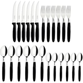 Faqueiro Tramontina Ipanema Jogo de Talheres Preto 24 peças Aço Inox Cabos Polipropileno.