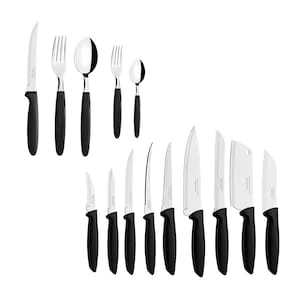 Componentes - 6 23360005 Faca Churrasco inox 5" Ipanema Preto - 6 23362000 Garfo Mesa inox Ipanema Preto - 6 23363000 Colher Mesa inox Ipanema Preto - 6 23365000 Garfo Sobremesa inox Ipanema Preto - 6 23367000 Colher Chá inox Ipanema Preto - 1 23410005 Faca Churrasco/Frutas inox 5" Plenus Preto - 1 23419003 Faca Tornear inox 3" Plenus Preto - 1 23420003 Faca Legumes/Frutas inox 3" Plenus Preto - 1 23422007 Faca Pão inox 7" Plenus Preto - 1 23425005 Faca Dessossar inox 5" plenus Preto - 1 23426007 Faca do Chef inox 7" Plenus Preto - 1 23428005 Faca Tomate inox 5" Plenus Preto - 1 23430005 Cutelo Inox 5" Plenus Preto - 1 23442005 Faca Santoku inos 5" Plenus Preto