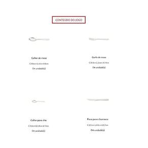 as colheres com bojo tem formato simétrico e bordas cuidadosamente arredondadas. As facas são totalmente temperadas, garantindo maior durabilidade no fio de corte e maior resistência à corrosão. Elas ainda preservam as louças, já que não riscam as porcelanas. O faqueiro ainda traz facas especiais para churrasco, tornando os momentos mais saborosos. Peças totalmente feitas de aço inox, altamente duráveis, mantêm suas características , preservando a beleza, a higiene e a durabilidade do material. Colheres com bojo em formato simétrico e bordas cuidadosamente arredondadas. Garfos com dentes polidos na parte interna, com formato apropriado para a boca e bordas arredondadas para proporcionar maior conforto no uso. Facas totalmente temperadas, que garantem maior durabilidade no fio de corte e maior resistência à corrosão, e por suas características de temperabilidade, não riscam as porcelanas. Acabamento em brilho, com detalhes no cabo. Próprias para uso diário combinam com qualquer ambiente. Podem ser lavadas diariamente na máquina de lavar louças. Durante a lavagem, use apenas sabão ou detergente e uma esponja macia. Outros tipos de produtos, como palha de aço, poderão riscar ou prejudicar o brilho dos talheres. Enxágue bem cada peça a fim de remover totalmente os resíduos dos produtos de limpeza, pois, por serem abrasivos, podem prejudicar o inox. Sempre que possível, use água quente, pois renova o brilho do talher. Após a lavagem, enxugue imediatamente os talheres, caso contrário, as substâncias químicas da água cloro poderão causar manchas. Evite atrito entre os talheres durante o processo de lavagem e no armazenamento, para mantê-los sem riscos. Evite o contato das peças com superfícies quentes. Elas provocam a descoloração do produto. Não guarde os talheres em locais úmidos. A umidade também provoca manchas. Ao usar a lava-louça, recomendamos retirar os talheres logo que tenha terminado o ciclo ''enxaguar'', a fim de que sejam secados manualmente. Peso: 0,40 kg. Garantia: 90 dias de garantia legal para vícios ou defeitos de fabricação.
