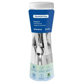 Faqueiro Tramontina Ipanema com Lâminas em Aço Inox e Cabos de Polipropileno Branco com Pote Plástico 24 Peças