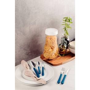 Garanta refeições cheias de estilo e uma mesa muito mais completa com o Faqueiro Tramontina Leme com Lâminas em Aço Inox e Cabos de Polipropileno Azul 20 Peças! Composto por peças essenciais para as principais refeições do seu dia. São produzidas com cabos em polipropileno na cor azul e com lâminas em aço inox altamente duráveis e resistentes. É ainda muito prático, fácil de limpar e pode ir à máquina de lavar louças, facilitando muito mais suas tarefas na cozinha. Deixe sua mesa mais colorida e agradável com os talheres Tramontina Leme!