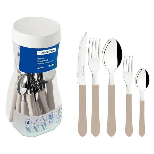 Faqueiro Tramontina Leme Com Lâminas Em Aço Inox E Cabos De Polipropileno Cinza 20 Peças Tramontina