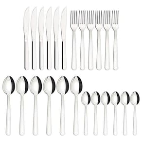 - Garfos e colheres que garantem maior resistência devido a espessura do aço e a estampagem das lâminas.