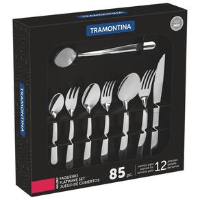 Uma mesa posta é essencial para tornar suas refeições mais especiais e proporcionar a elas muita qualidade e estilo. Para isso, conte com o faqueiro Tramontina em aço inox 85 peças. Totalmente produzidas em aço inox, suas peças mantém a beleza, a higiene e a durabilidade, tendo as lâminas das facas com tratamento térmico e os garfos e colheres espessura especial do aço e a estampagem das lâminas, características que garantem maior resistência e durabilidade. O faqueiro ainda pode ir à máquina de lavar louças e vai tornar seu dia a dia na cozinha muito mais fácil!