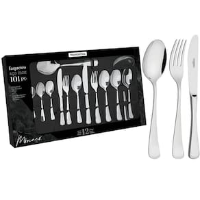 Modelo: Aço Inox com Facas de Mesa Acabamento Alto Brilho com Detalhes no Cabo 101 Peças da linha Mônaco 66917/030