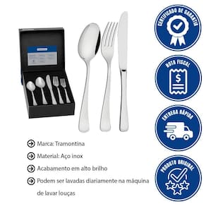 FAQUEIRO TRAMONTINA MÔNACO EM AÇO INOX COM FACAS DE MESA FORJADAS ACABAMENTO BRILHO 30 PEÇAS 66917190