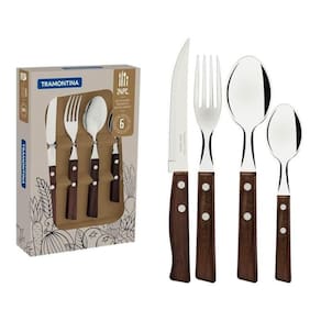 Faqueiro Tramontina Tradicional Cabo De Madeira Natural 24 Peças