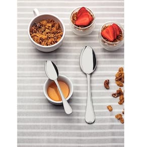 INFORMAÇÕES GERAIS - Peças totalmente feitas de aço inox, altamente duráveis, mantêm suas características autênticos, preservando a beleza, a higiene e a durabilidade do material. - Colheres com bojo em formato simétrico e bordas cuidadosamente arredondadas. - Garfos com dentes polidos na parte interna, com formato apropriado para a boca e bordas arredondadas para proporcionar maior conforto no uso. - Facas totalmente temperadas, que garantem maior durabilidade no fio de corte e maior resistência à corrosão, e por suas características de temperabilidade, não riscam as porcelanas. - Acabamento em alto brilho, com detalhes no cabo. - Serviço completo para mesa e sobremesa. - Podem ser lavadas diariamente na máquina de lavar louças. - Sem estojo de madeira.