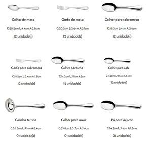 - As peças são produzidas em aço inox, o que permite durabilidade, garantindo que suas características sejam preservadas por muito mais tempo, além de contar com acabamento em alto brilho e detalhes no cabo, que proporcionam ainda mais beleza para a mesa.