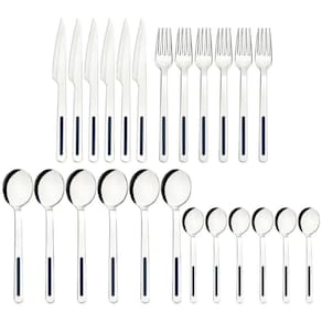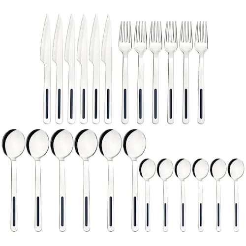 Informações técnicas: Garfos e colheres que garantem maior resistência devido a espessura do aço e a estampagem das lâminas; Talheres produzidos em aço inox que mantém a beleza, a higiene e a durabilidade; Lâminas das facas com maior durabilidade do fio devido ao tratamento térmico; Podem ir à máquina de lavar louças facilitando seu dia a dia; Cabos com detalhes em polipropileno.