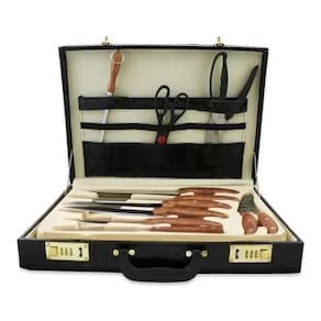 Adquira agora o Faqueiros De Churrasco De Aço Nióbio Profissional 6 Peças e tenha em mãos um conjunto completo e de alta qualidade para tornar o seu churrasco ainda mais especial!