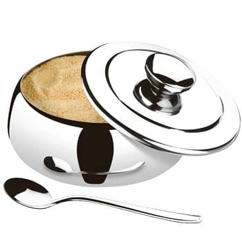 A Farinheira Átina é totalmente feita em aço Inox de fácil limpeza. Por ser um material neutro, o inox não altera a cor, o aroma e o sabor da farinha mantendo-a conservada para ser levada a mesa. Acompanha uma prática concha. Seu design clássico e acabamento brilho levam requinte e sofisticação na hora de servir!
