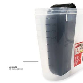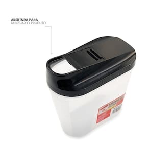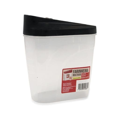 Farinheira Multiuso Com Medidas Preto Farinheira Multiuso Com Medidas Vermelho A farinheira se tornará um utensílio essencial em sua casa, um item de multiuso que permite que você guarde além de farinha, como; açúcar, café, grãos, cereais e o que mais desejar. Desenvolvida em material resistente, conta com marcações de medidas para você nunca mais errar a quantidade e um sistema de fechamento em deslize, impedindo que o conteúdo despeje. - Item de alta transparência.- Material 100% atóxico. - Livre de Bisfenol A (BPA Free). Trazendo total praticidade para sua cozinha no momento de armazenar os alimentos e, muita organização. Além do design moderno, que permite que você guarde-o onde desejar e otimize espaço. ESPECIFICAÇÕES:Material: Pláões: Larg.: 15cm X Alt.: 0,75g aprox. Cor: Transparente com Tampa Preta CONTÉM01 FARINHEIRA MULTIUSO COM MEDIDAS.