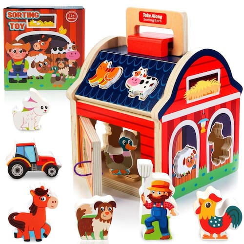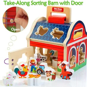 - 🐶?Maneiras criativas de brincar?Seu filho pode colocar os animais da fazenda no celeiro, fazer uma torre ou torres com 10 animais empilhando blocos, levantar os pedaços dos animais para fingir brincar e compartilhar os brinquedos de madeira do celeiro com os amigos. A porta do celeiro é fácil de abrir e fechar para que os animais entrem e saiam, brinquedos de aprendizagem pré-escolar perfeitos para crianças de 1, 2 a 3 anos