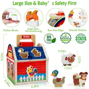 - 🐮?Baby's Safety First?Os animais de fazenda para crianças de 1 a 3 anos, projetados com blocos de madeira para animais de fazenda mais grossos e maiores, protegem os bebês do risco de asfixia. O brinquedo de separação em forma de fazenda é feito de madeira de alta qualidade com tinta não tóxica à base de água e puro polido à mão, é muito mais seguro do que outros brinquedos menores comuns